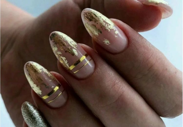 Яскравий та святковий вигляд манікюр отримує завдяки декоративній фользі.