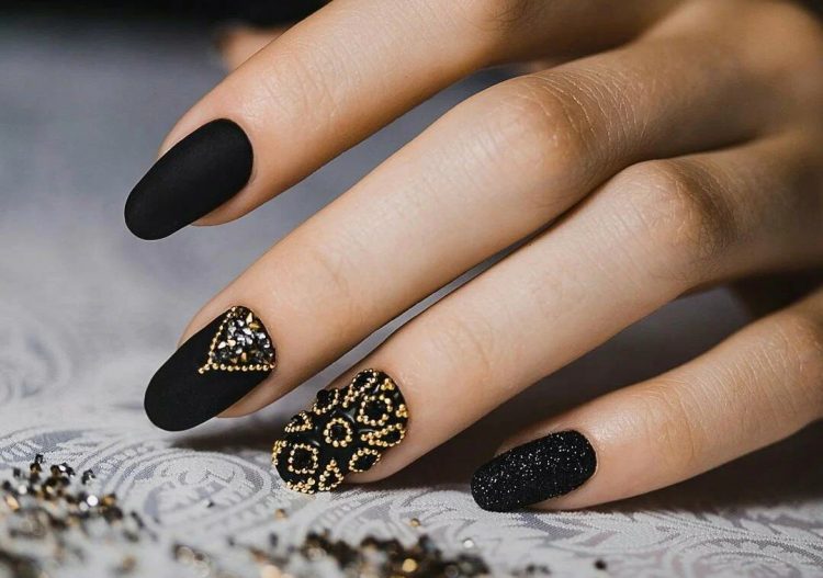 Вдало групується матове покриття зі стразами, гліттером, павутинкою, фольгою, геометричними малюнками, технікою омбре та глянсовими топами.