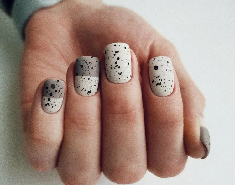 Матовий топ яскраво виділяє вкраплення і надає нігтям цікавого вигляду.