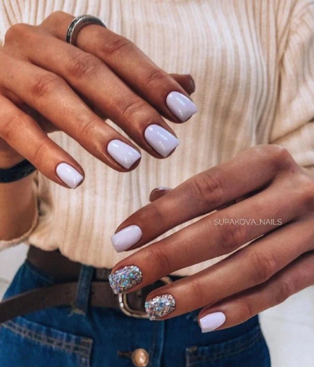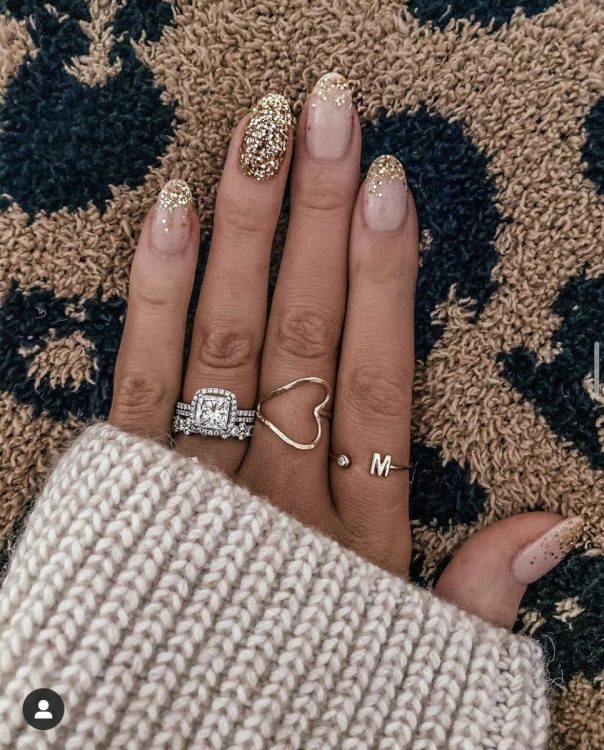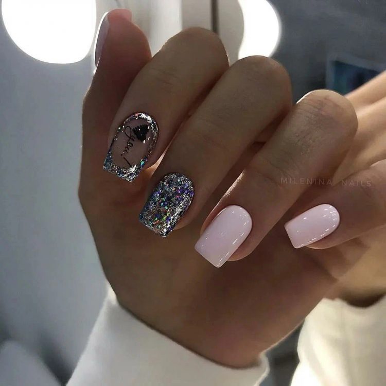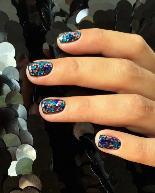 “Блиску багато не буває” – саме так можна охарактеризувати новорічні ідеї манікюру, основою якого є блискітки, глітер, шиммер і т.д. Вважається, що навіть мінімальна кількість блискучого дизайну освіжить манікюр будь-якого кольору. При цьому блискучі варіації найчастіше зустрічаються в зимову пору року, хоча манікюр з блискітками можна назвати універсальним і всесезонним. Головне значення відіграє колір манікюру і, власне, велика кількість блиску. Зовсім не обов’язково вибирати яскравий блиск і різноманітність дизайну, можна лише злегка “підсвітити” кінчики нігтів або додати ледь помітну “блискітку”.