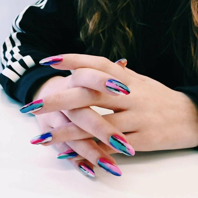 Розводи і натуральні текстури виглядають не менш ефектно і неповторно. Будь-які відтінки можна змішати з нейтральними, виконавши барвисту комбінацію. “Котяче око” ніхто не відміняв. Любителькам даної техніки сподобається будь-яке колірне виконання.