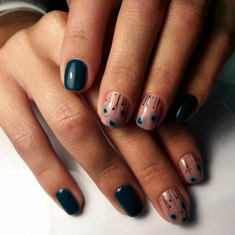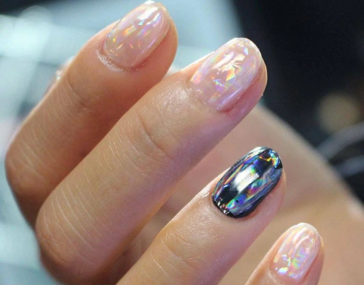 У топі прозорі покриття з нанесенням листочків та гілочок, геометричних фігур та квітів або дизайн з ефектом «бите скло» , що буде виглядати надзвичайно модно на коротких нігтиках.