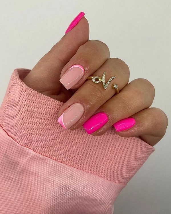 Надайте яскравості своєму манікюру, зробивши не класичну білу усмішку, а підібравши яскравіші відтінки. Кольорова усмішка виглядає стильно. Але такий дизайн залишається стриманим, тому підійде навіть для ділового образу.