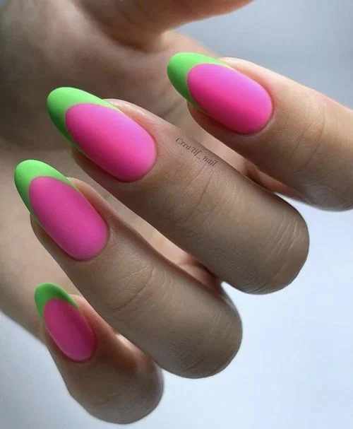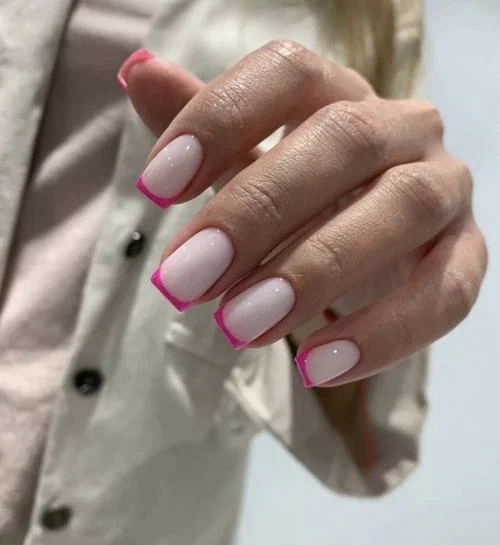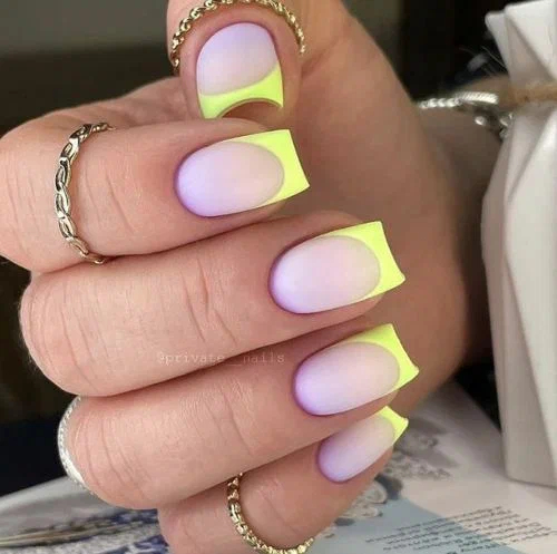 Перше місце у нашому модному nail-параді займає френч – у літньому його виконанні. Це різні варіанти оформлення кінчиків нігтиків у модних колірних рішеннях: рожевих, жовтих, салатових, помаранчевих, малинових, бузкових та неонових. Крім того, основа нігтиків може бути як повністю прозорою, так і виконаною в різних пастельних відтінках: бежевому, молочному, пастельно-рожевому, пастельно-блакитному.