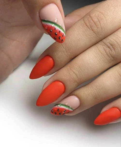 Третє місце у нашому літньому nail-параді, який рік поспіль займає нюдовий дизайн. Цей ніжний та повітряний дизайн підійде під будь-який образ та вбрання. Він чудово поєднується і з глянцевим, і з матовим топом. Підходить для довгих та коротких нігтів. Може бути як у однотонному виконанні, так і доповнений невеликими акуратними малюнками метеликів, квітів, фруктів, геометричних фігур.