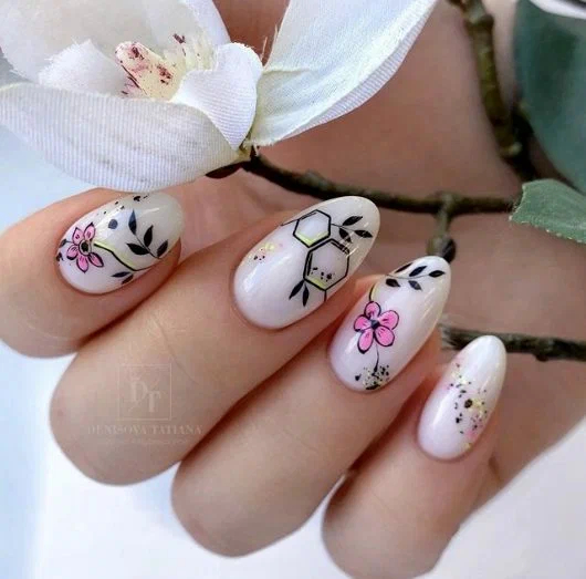 Номер три по-популярності – це малюнки різних літніх кольорів. Дуже красиво і по-літньому ніжно виглядають малюнки: ромашок, півоній, маків, троянд,, що символізують літо. Причому, вони дуже красиво виглядають як у яскравому їх виконанні, так і в ніжних нюдових тонах.