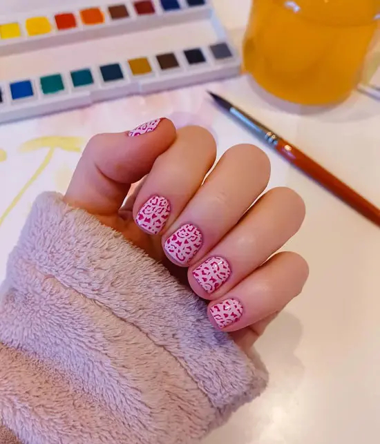 Рожевий манікюр із леопардовим принтом