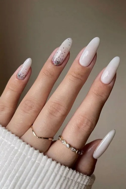 Молочний манікюр із блискітками