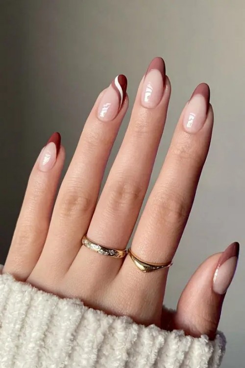 Коричневий френч на довгих овальних нігтях