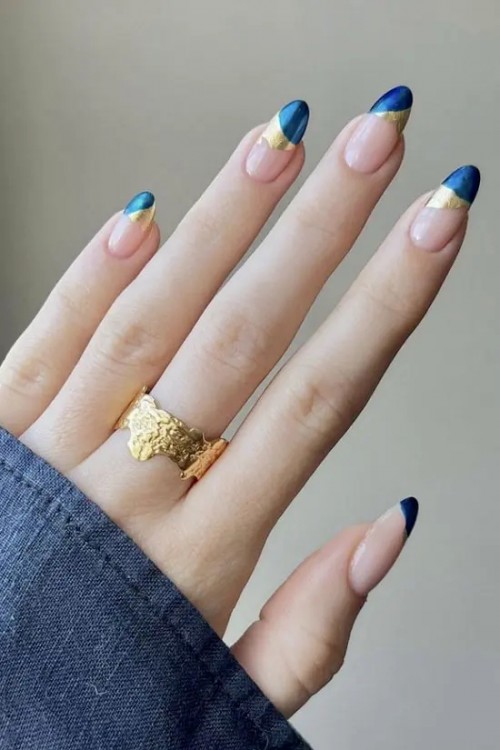 Синій манікюр із золотою фольгою