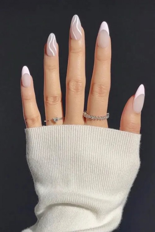 Білий френч та завитки на довгих нігтях