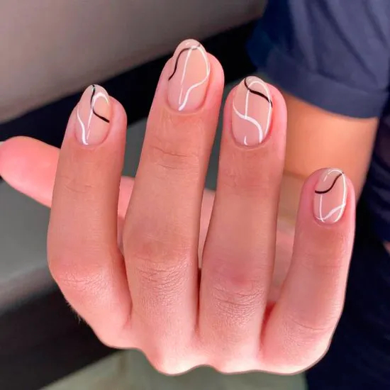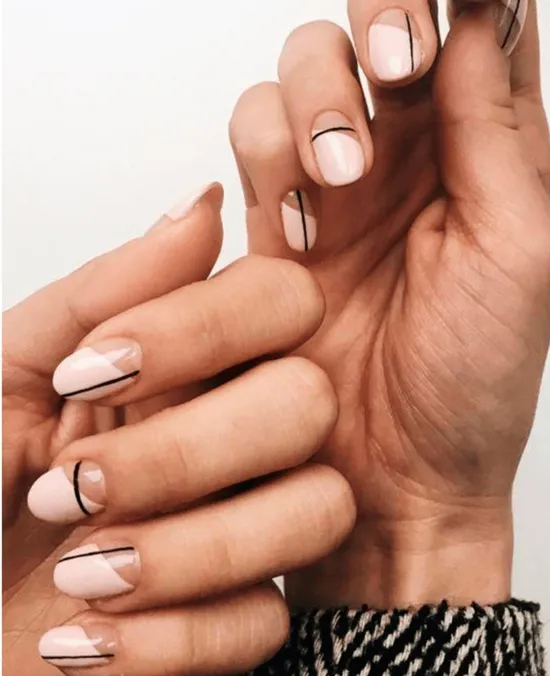 Виберіть будь-яку основу, яка підходить до відтінку шкіри, і намалюйте лінії у випадковому напрямку на нігті.