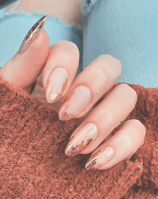 Це такий чудовий осінньо-зимовий образ для нігтів. Багато сучасних жінок дуже люблять золото, але рожеве золото, срібло, навіть блискучий темно-зелений колір були б такими ж красивими!