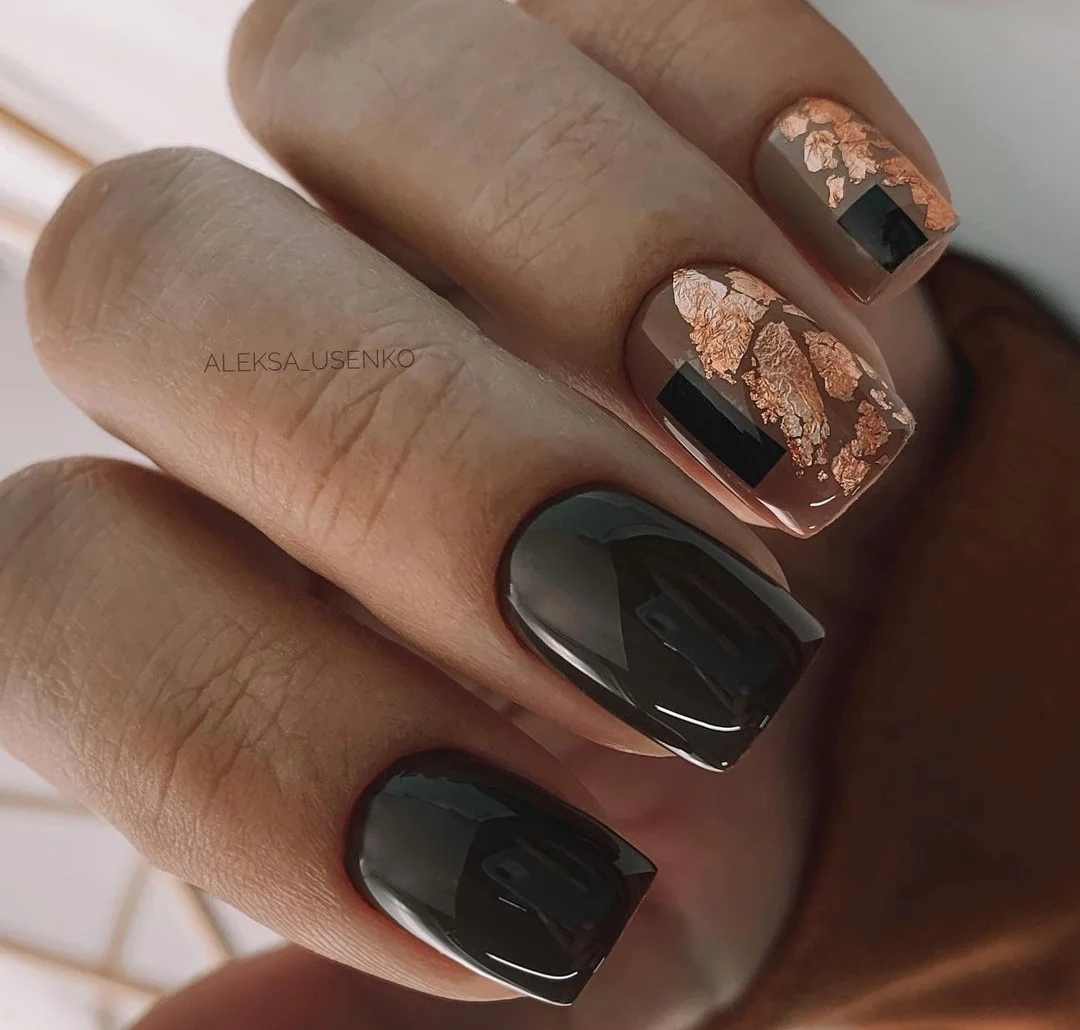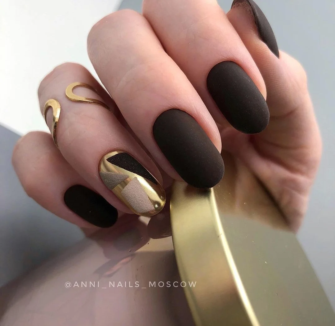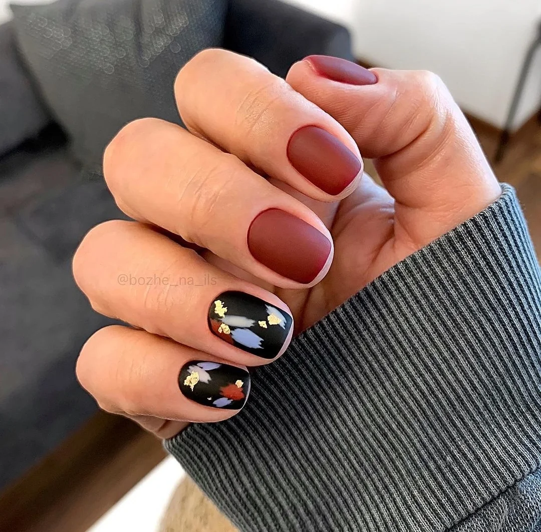 Трендовий манікюр на осінь 2021, виконаний в темних кольорах