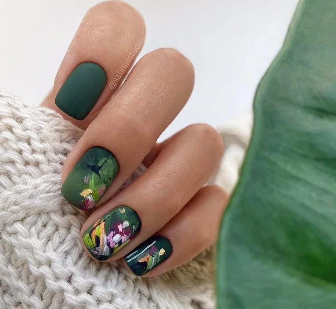 Темний манікюр не має кордонів або сезонності. Його вражаюче поєднання з іншими відтінками та обігрування дизайном приковує захопливі погляди. Це роботи, які хочеться повторити. Ідеї цього сезону і популярні тони: вишневий, коричневий, синій, чорний, зелений.
