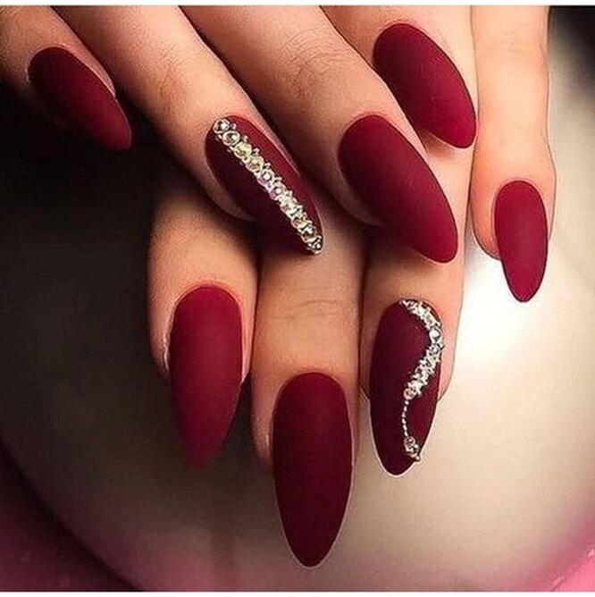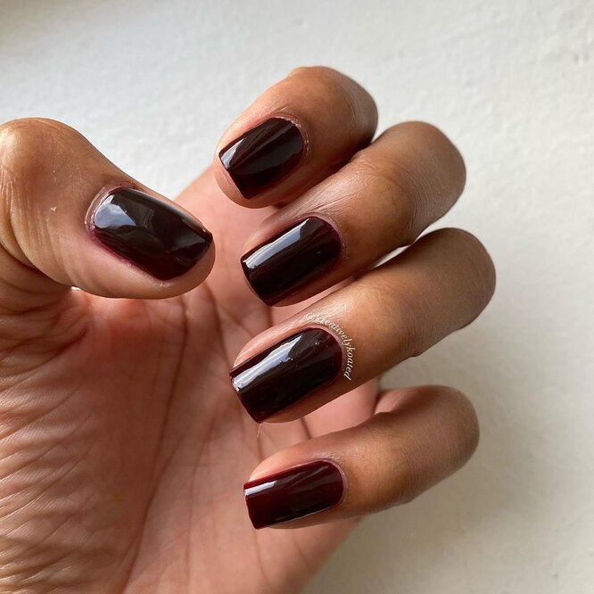 Один погляд на ваш манікюр повинен викликати асоціації з келихом бургундського! Для цього дотримуйтесь простого правила: вибираючи винні відтінки, застосовуйте глянцевий фініш.