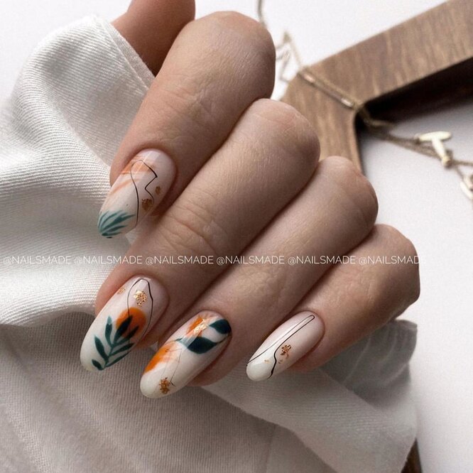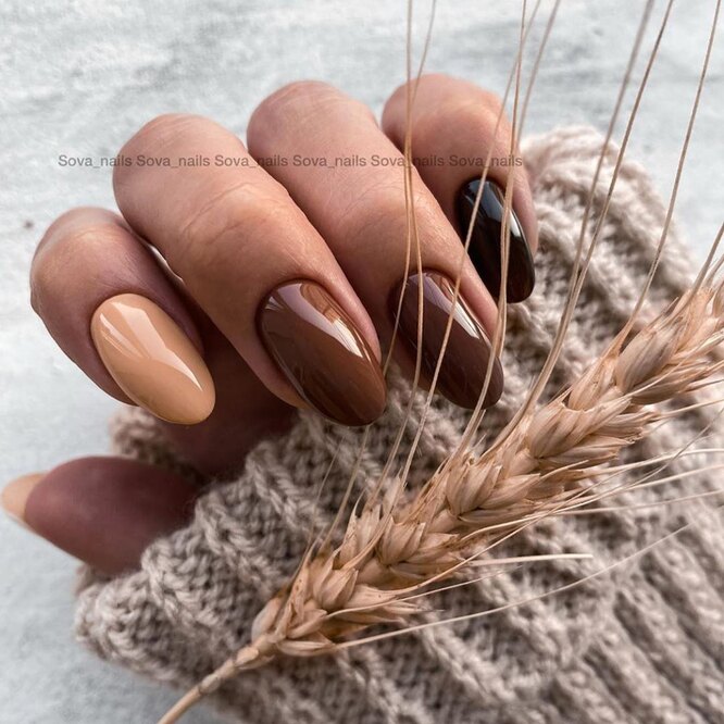 Потрібно визначитися з сезонною палітрою (коричневі, гарбузові, глибокі синьо-зелені відтінки) і попросити майстра зобразити на одному з нігтів шматочок осіннього пейзажу. Коли, якщо не зараз?