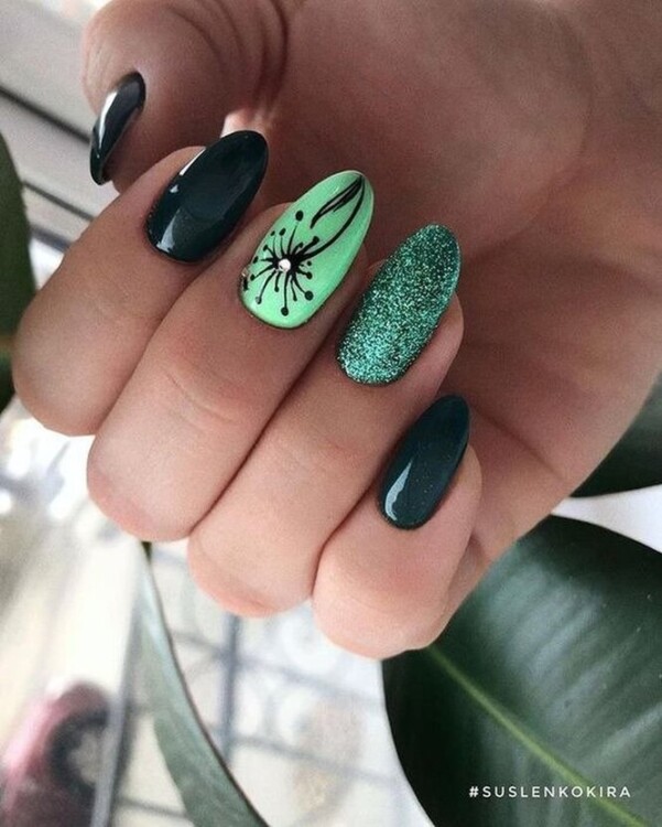 Смарагд в цьому році диктує свої правила, а саме – все і відразу. Гліттер, стрази, неон – міксуйте все це, стежачи тільки за тим, щоб виконання не вибивалося з гами. Попереджаємо: «працює» тільки в цьому сезоні і може швидко набриднути!