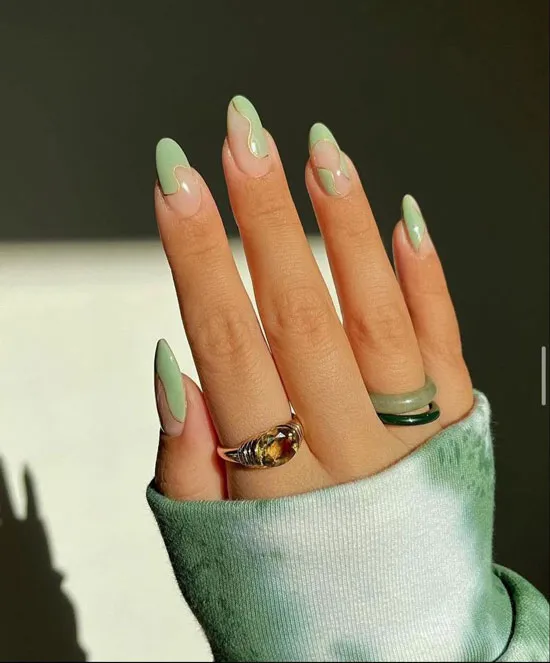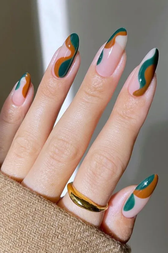 Цікаве поєднання зеленого та коричневого на довгих нігтях