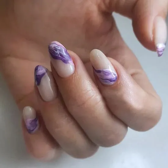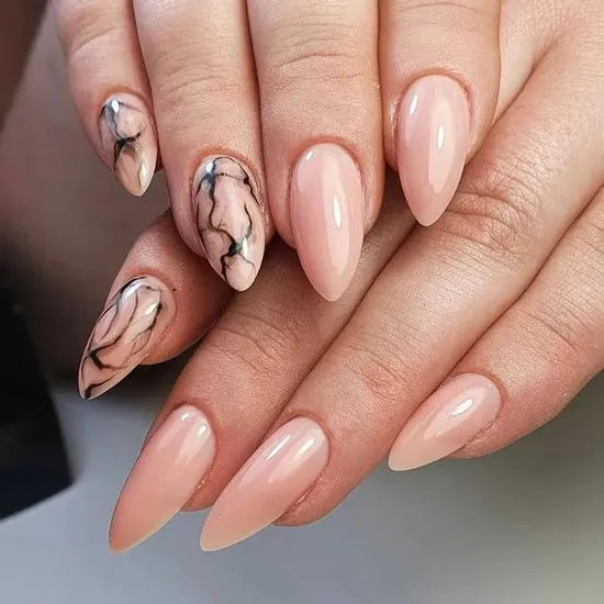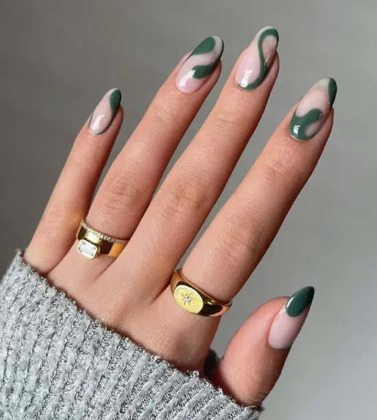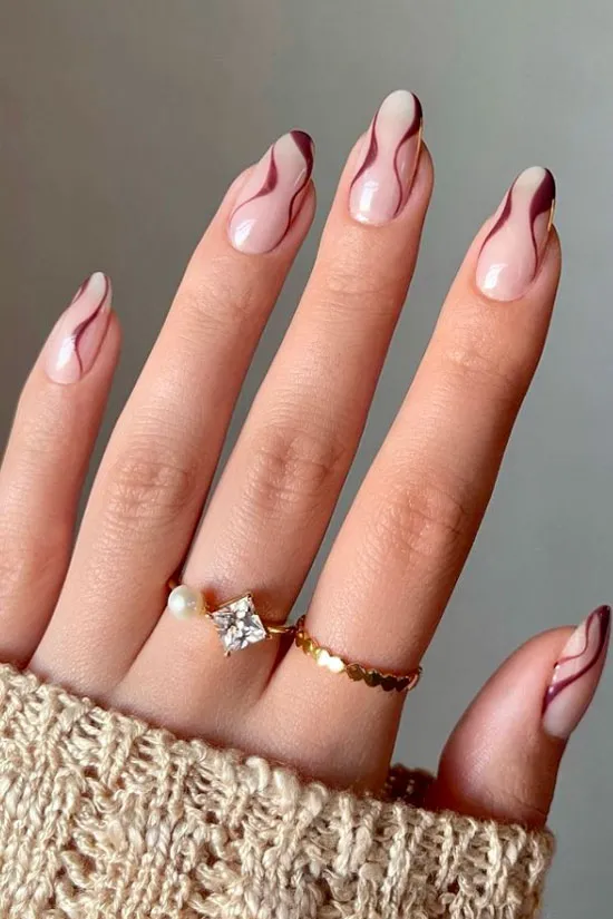 Манікюр із тонкими, хвилястими лініями на овальних нігтях