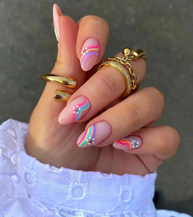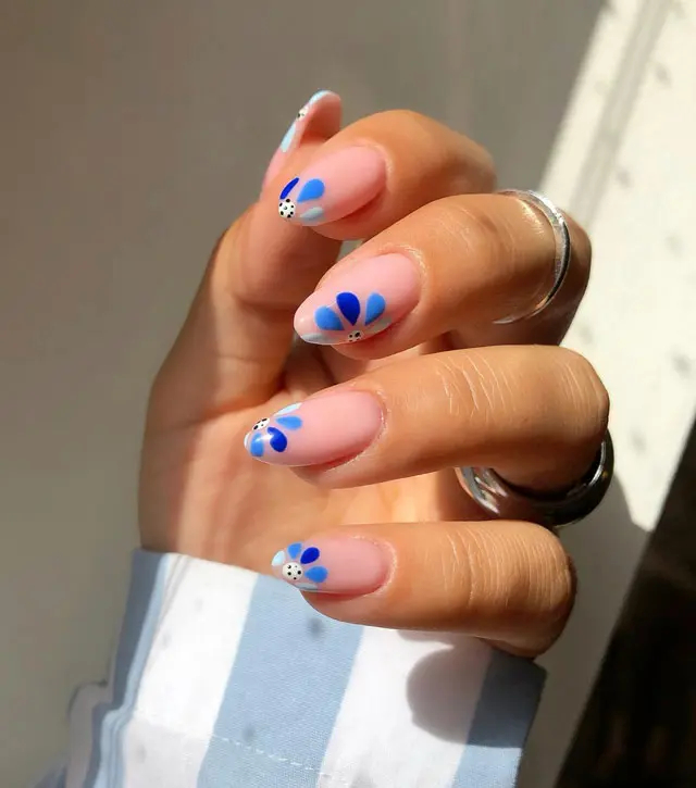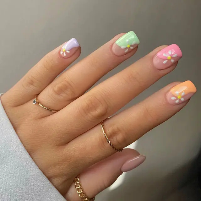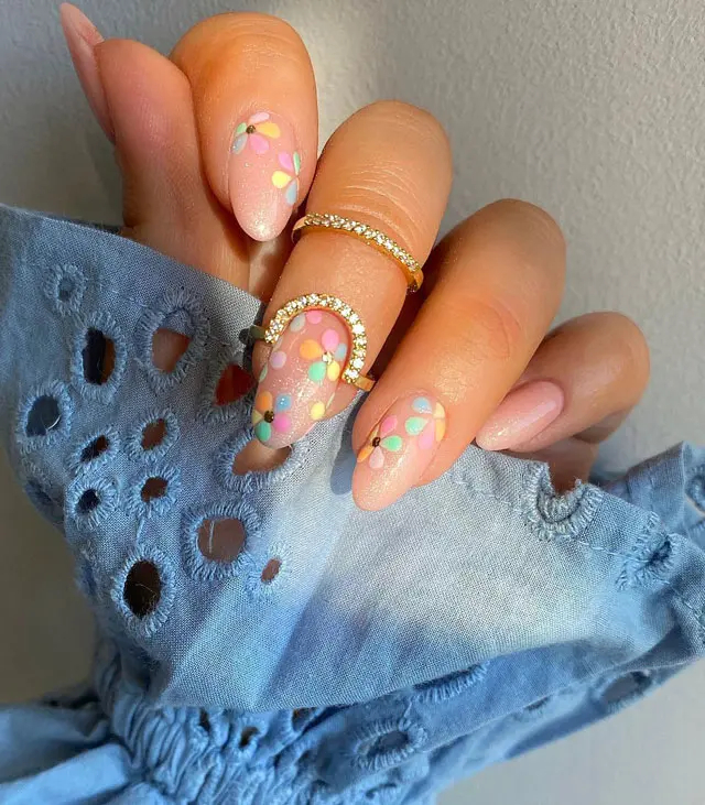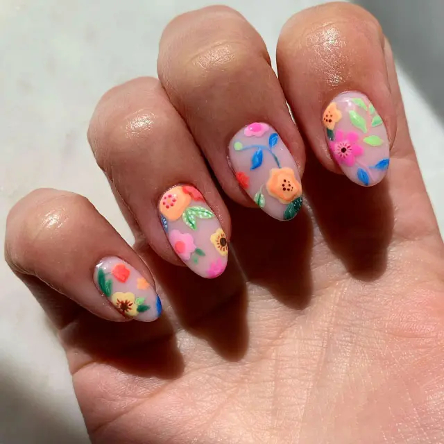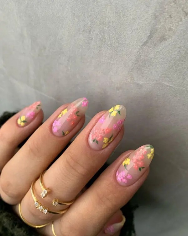 Різнокольоровий квітковий манікюр на овальних нігтях