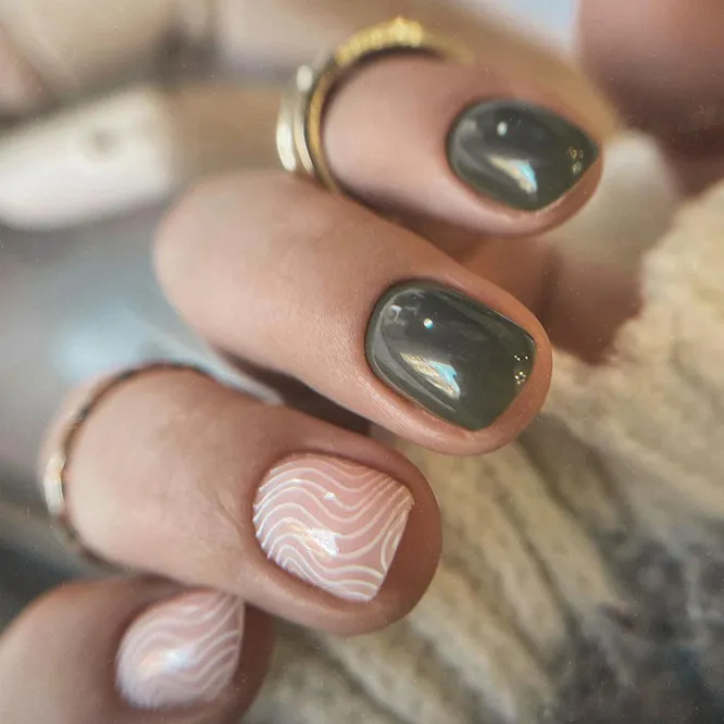 На особливу увагу в цьому списку заслуговує зелений колір. Якщо ви регулярно читаєте наші матеріали про манікюрну тенденцію, то напевно пам’ятаєте, що цей відтінок актуальний ще з минулої весни. З кожним місяцем зелений колір завойовує дедалі більше уваги. Ще б пак, адже у нього стільки різноманітних відтінків — і особливо круто вони виглядають разом, навіть у межах одного нігтя. Загалом, беріть на замітку та не бійтеся експериментів!