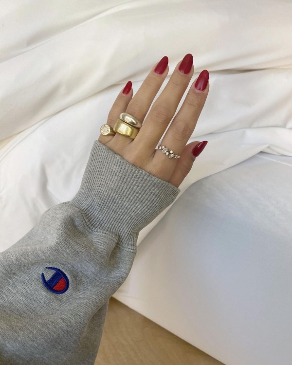 Розставити акценти в образі допоможуть не лише аксесуари, а й яскравий манікюр, який добре виглядатиме і на закруглених, і на квадратних нігтях. Найактуальнішими восени 2021 стануть насичені відтінки, що нагадують про стиглу вишню, пряний глінтвейн і рубіни на короні Єлизавети II, а якщо вам захочеться трохи більше різноманітності – придивіться не тільки до глянцевих але й до «оксамитових» матових лаків.