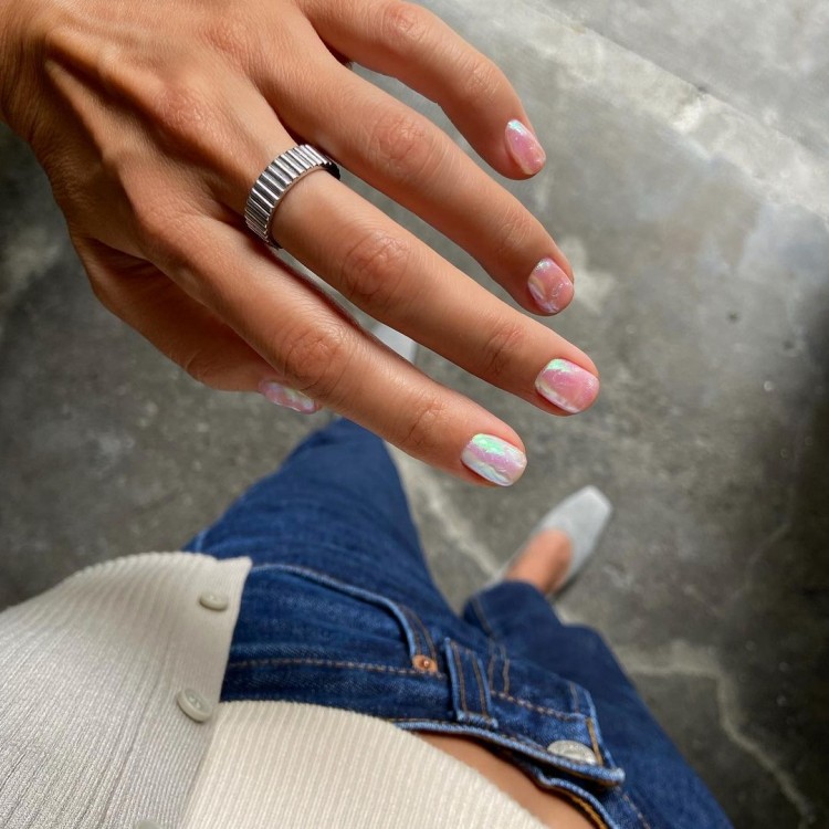 Чудовим варіантом для всіх, хто хоче додати у свій образ трохи романтичності, стане манікюр із чарівною назвою «Аврора», що нагадує загадкові переливи північного сяйва. Як і все наймиліше, цей тренд прийшов до нас із Південної Кореї і став таким популярним завдяки своїй універсальності. Він не тільки чудово виглядає на нігтях різної форми але й має властивості «хамелеона» та підлаштовується і під темні, і під яскраві речі, тому підійде буквально до всього, що ви одягнете.