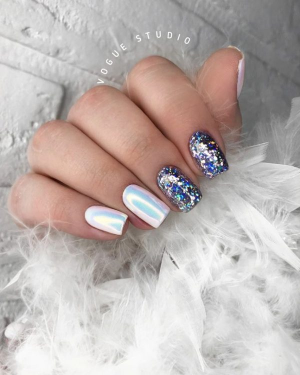 Як тільки не називають цей новомодний дизайн: сльоза єдинорога, рідкий метал, ртуть, розплавлене золото. Однак він явно у фаворі у модниць. Восени цей тренд стане одним із найпопулярніших. За допомогою фольги чи липкого клею ви зможете створити стильний манікюр.