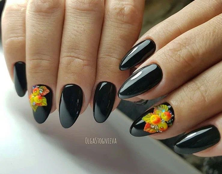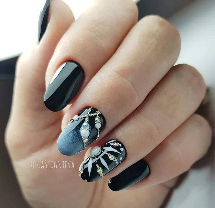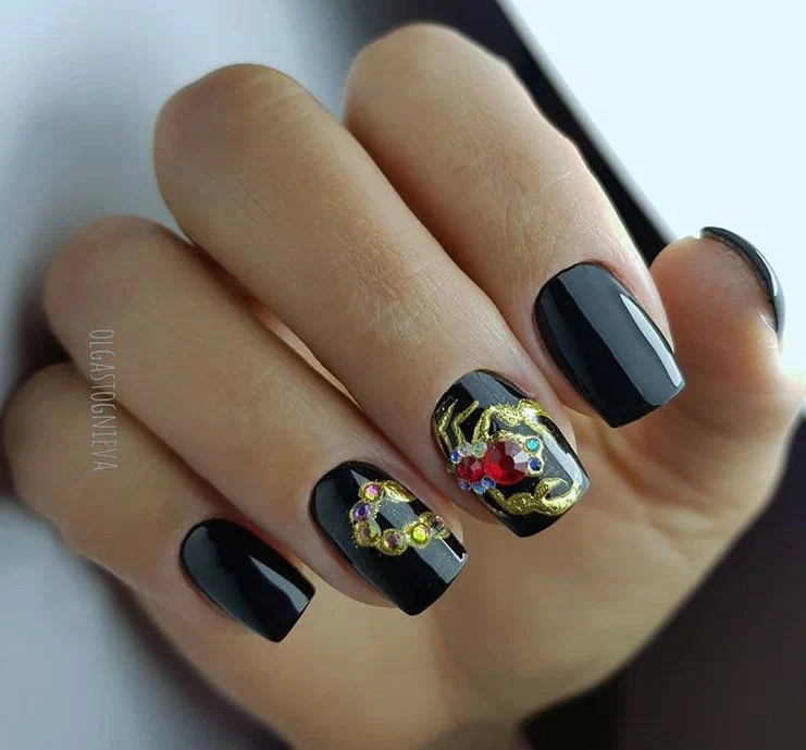 Чорний відтінок для манікюру підходить жінкам із сильним характером та своїм баченням світу. Такий дизайн помітять відразу, тому варто приготуватися до загальної уваги. Щоб розбавити гарний чорний манікюр, можна використовувати павутинку, малюнки чи стрази.