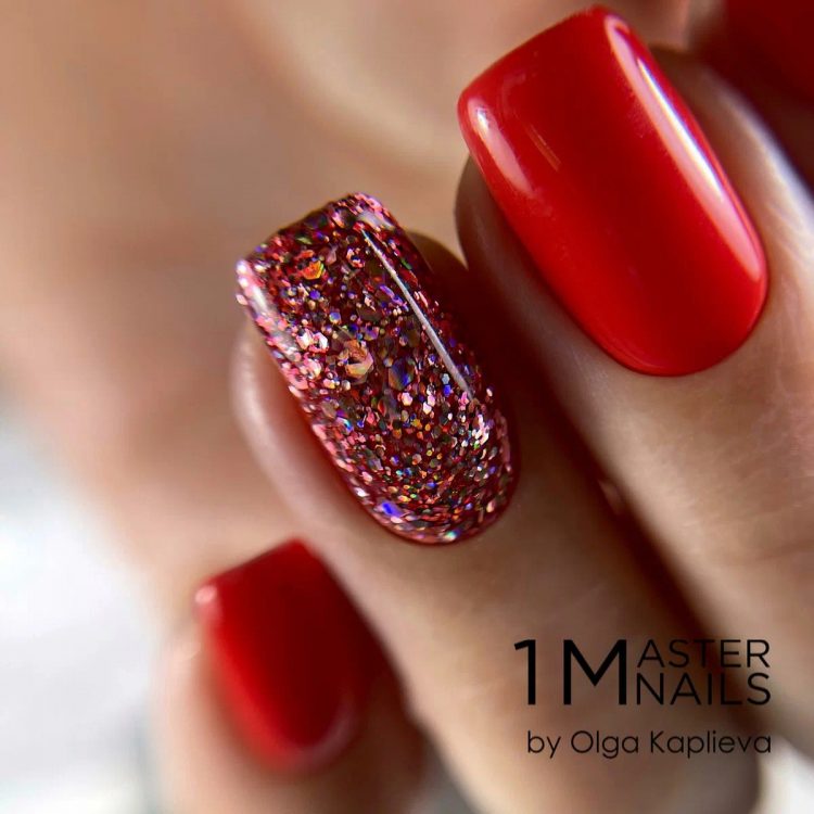 Оксамитові червоні нігті з блискучими деталями – красивий манікюр на осінь