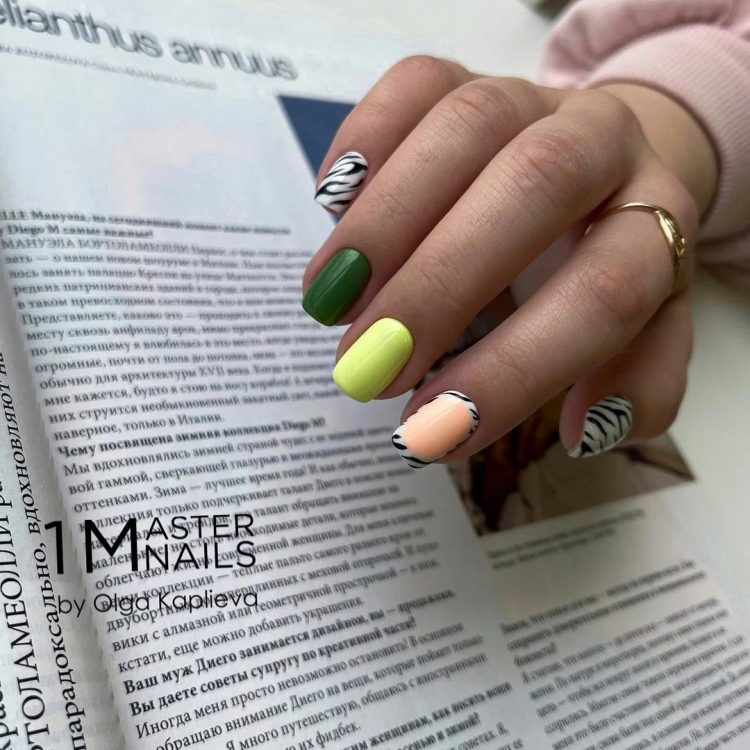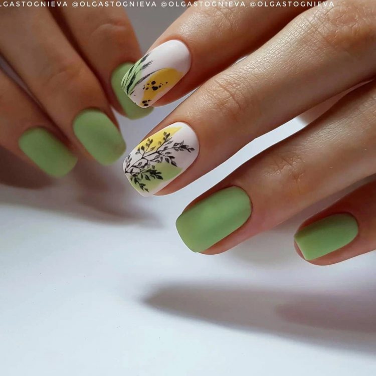 Зелена палітра підходить як для теплого літа, так і холодної зими. А восени цей відтінок стає головним у нейл-арті індустрії. Можна зеленим покрити абсолютно всі нігті і відмовитися від будь-якого дизайну, також разом з цим кольором чудово виглядає стильний колор-блокінг та інші види манікюру.