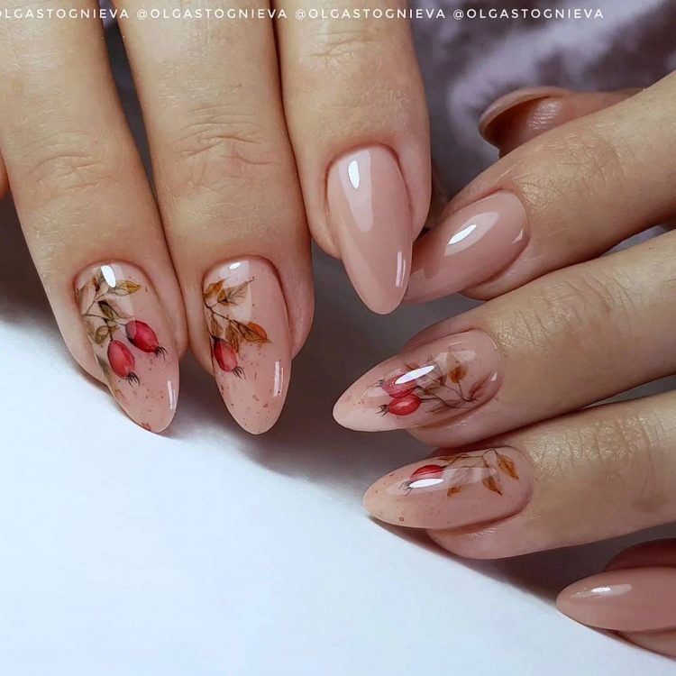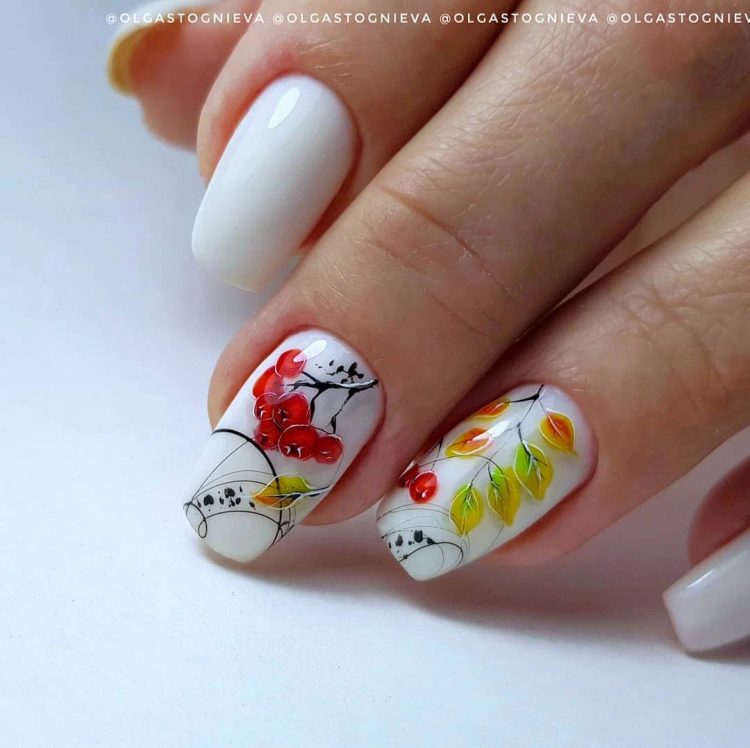 Створити справді витончений та стильний манікюр можна за допомогою різноманітних малюнків. Тематика осені – це листя, гілочки, яскраві ягоди та багато іншого.