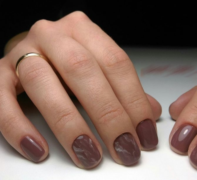 Якщо вам не до душі темний лак, вибирайте пастельні відтінки коричневого. Їх можна поєднувати і з іншими спокійними кольорами – наприклад, з пилючноно-рожевим або молочним.