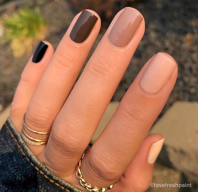 Любите однотонний манікюр але не можете вирішити, який відтінок коричневого вам подобається більше? Візьміть п’ять кольорів, наприклад, від темно-коричневого до кольору кави з молоком, і покрийте кожен ніготь іншим.