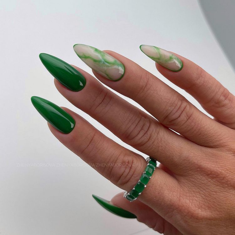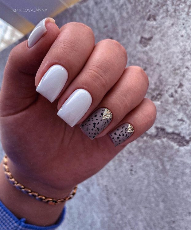 В 2023 році мода на розводи на нігтях продовжить свої видозміни. Мармурові візерунки, імітація штучного каменю та морська хвиля красуватимуться на нігтях усіх модниць протягом року. Цей тренд передбачає наявність вкраплення різних кольорів, фольгу та написи.