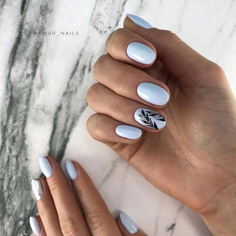 Окремо стоїть дизайн, при якому виділено зону біля кутикули. Вона також формується як дуги. В якості фону вибирають світлий або інший класичний колір. Для прикрас можна вибрати будь-який з матеріалів, перерахованих вище.