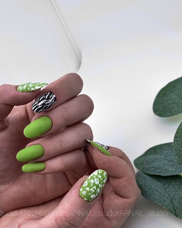 На таких дизайнах особливо актуальним є матовий закріплювач. Він створить чудовий фініш на малюнках, схожих на природний камінь. Однаково доречні як лаконічні звивисті лінії, так і активний барвистий градієнт.