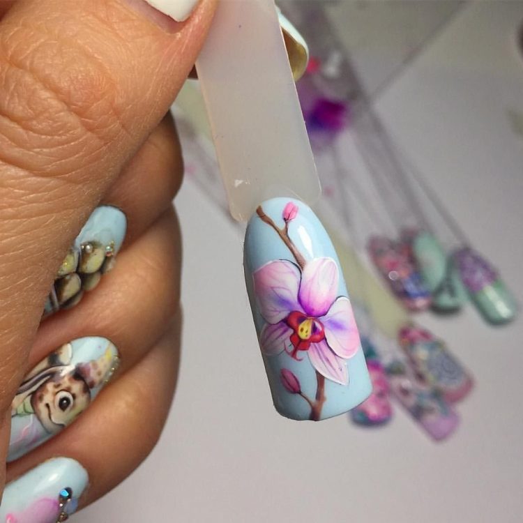 Малюнки однаково часто обирають бізнес-леді та романтичні рокерші. Поза конкуренцією залишаються сухоцвіти, літні букети, мультиплікаційні герої, оголені силуети та написи. Подібний дизайн виконується за допомогою тонких пензлів. У руках досвідченого майстра будь-яка ідея оживає на нігтях.