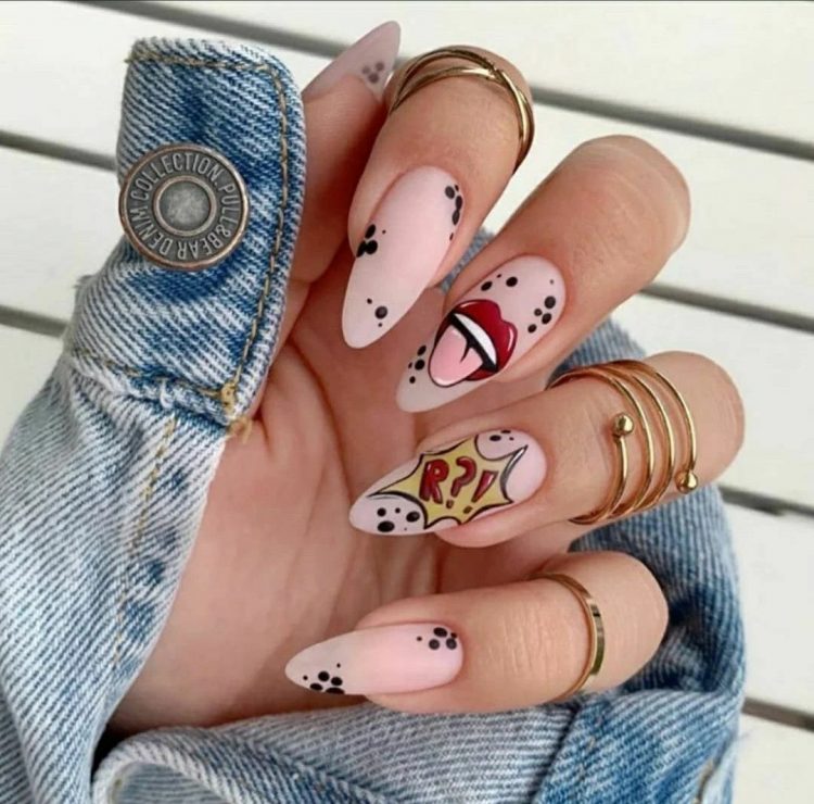 Грайливі, пікантні, жартівливі – такі наклейки на нігтях говорять про те, що модниця легко ставиться до всього і не надто вразлива.