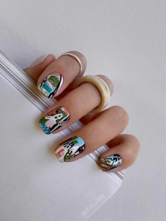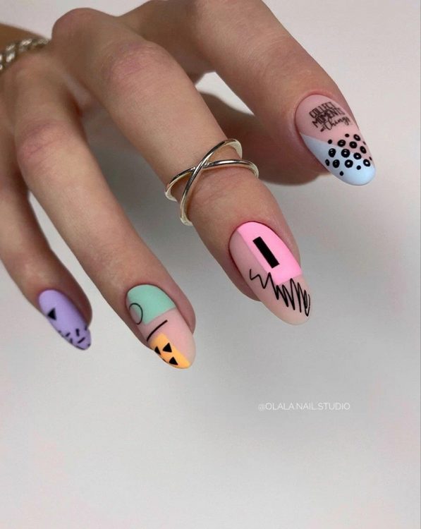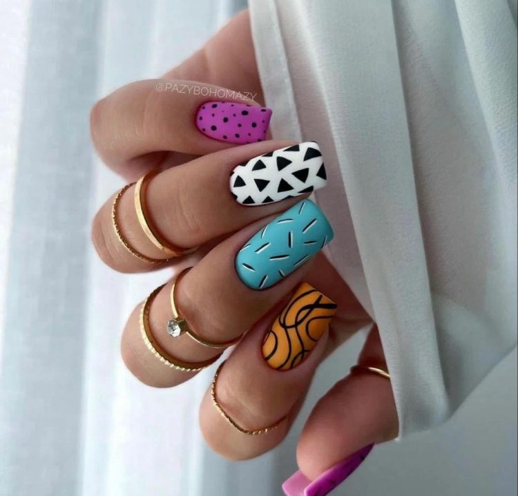 Якщо невигадливий манікюр вас не приваблює, спробуйте комбінований варіант, в якому кожна нігтьова пластина має свій, яскравий або не дуже, дизайн.