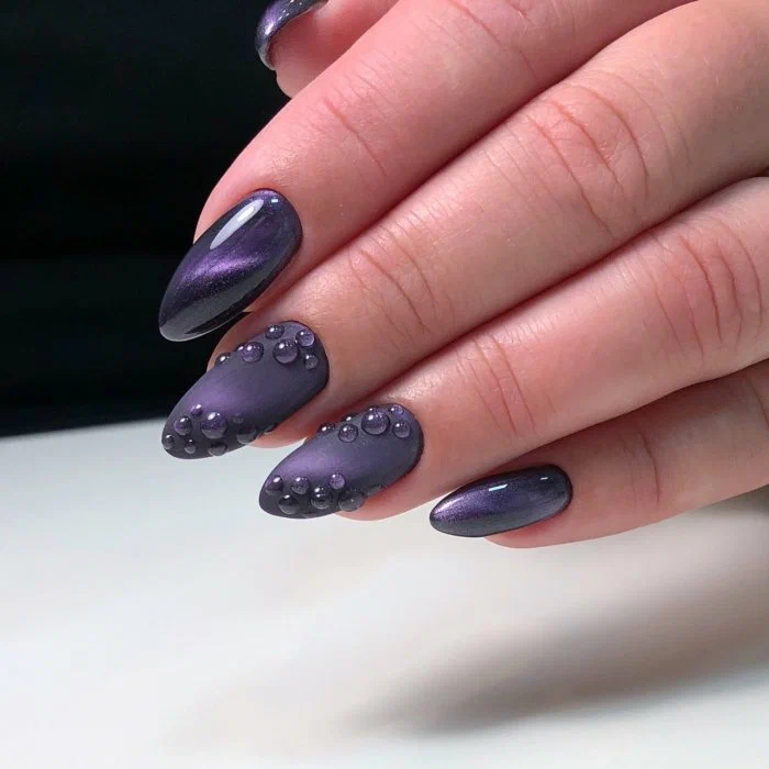 Особливе місце в нейл-індустрії в осінній період займає досить цікавий та складний дизайн, акцентом якого є так звані “крапельки”, що прикрашають одну або кілька нігтьових пластин модниці.