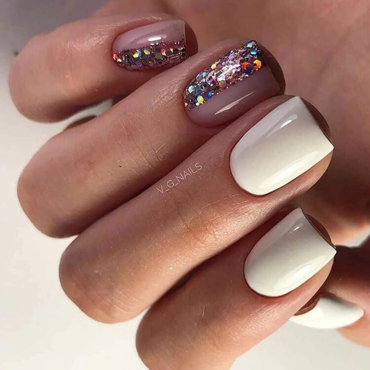 Одним з найпопулярніших відтінків стане білий колір. Він універсальний і чудово поєднується з будь-якими відтінками. Також можна використовувати найрізноманітніші елементи декорування. Чарівно буде виглядати на білому покритті перлова втирка для ніжного оксамитового ефекту.