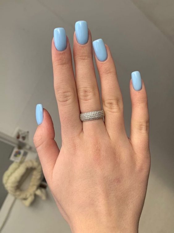 Блакитні відтінки в дизайні нігтів незмінно актуальні у весняно-літній сезон, це може бути як однотонний глянсовий або матовий дизайн, так і комбінований. Чим м’якший відтінок блакитного, тим нейтральнішим виглядає нейл-арт.