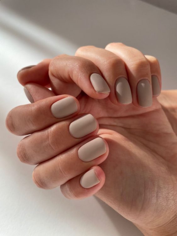 Аматорки мінімалізму та стилю «тиха розкіш» незмінно роблять ставку на однотонний глянсовий або матовий манікюр з бежевими відтінками гель-лаку, починаючи від найсвітліших і закінчуючи бежево-коричневими.