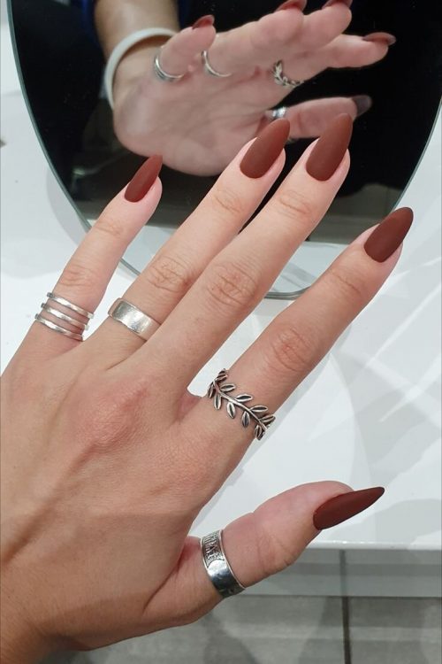 Незважаючи на те, що коричневий колір (як і бордовий) вважається типово осінньою кольоровою гамою, цього сезону його рекомендується носити на повсякденній основі, а дизайн нігтів у коричневих тонах поступово стає маст-хевом будь-якого сезону.
