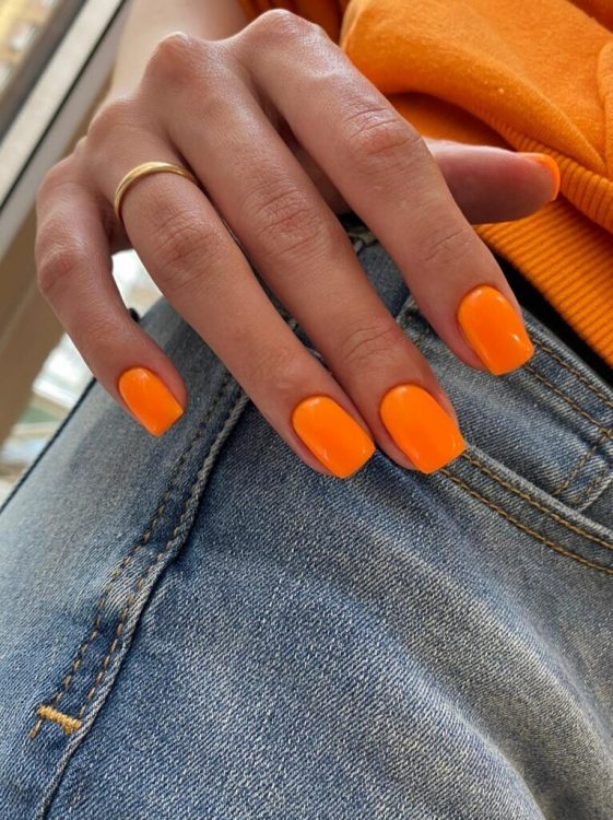 Яскравий і соковитий помаранчевий колір — найкращий вибір для найсміливіших модниць і це стосується не лише дизайну нігтів, а й підбору одягу, взуття та аксесуарів. Однотонний манікюр у помаранчевих тонах є досить акцентним варіантом, і це варто враховувати.