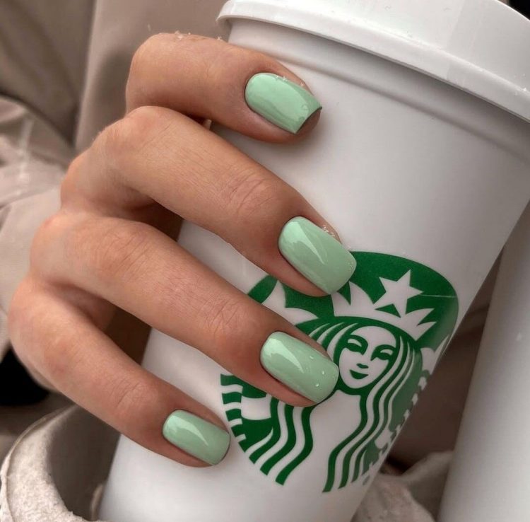 Світло-зелені відтінки добре виглядають у повсякденному дизайні нігтів, особливо в однотонному варіанті. Втім, зелений колір добре поєднується і з іншими трендовими відтінками цього сезону, що дозволяє вибрати незбиті варіанти нейл-арту.