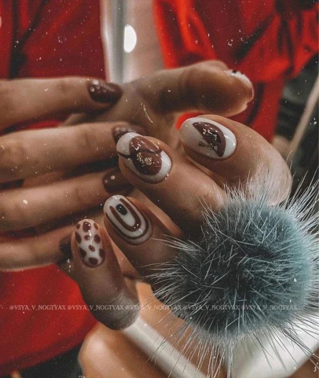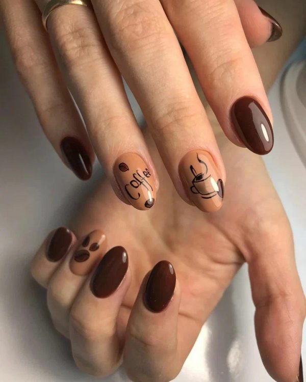 Коричневі відтінки в нейл-індустрії вважаються класикою для будь-якого сезону, але найбільшою популярністю вони користуються саме в осінній період. Карамель, какао, капучино, кава, шоколад – всі ці “смачні” назви викликають позитивні емоції в похмурі осінні дні та асоціюються з теплом та затишком.