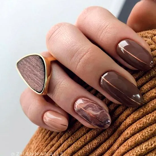 Трендовий осінній манікюр в коричневих відтінках 2021